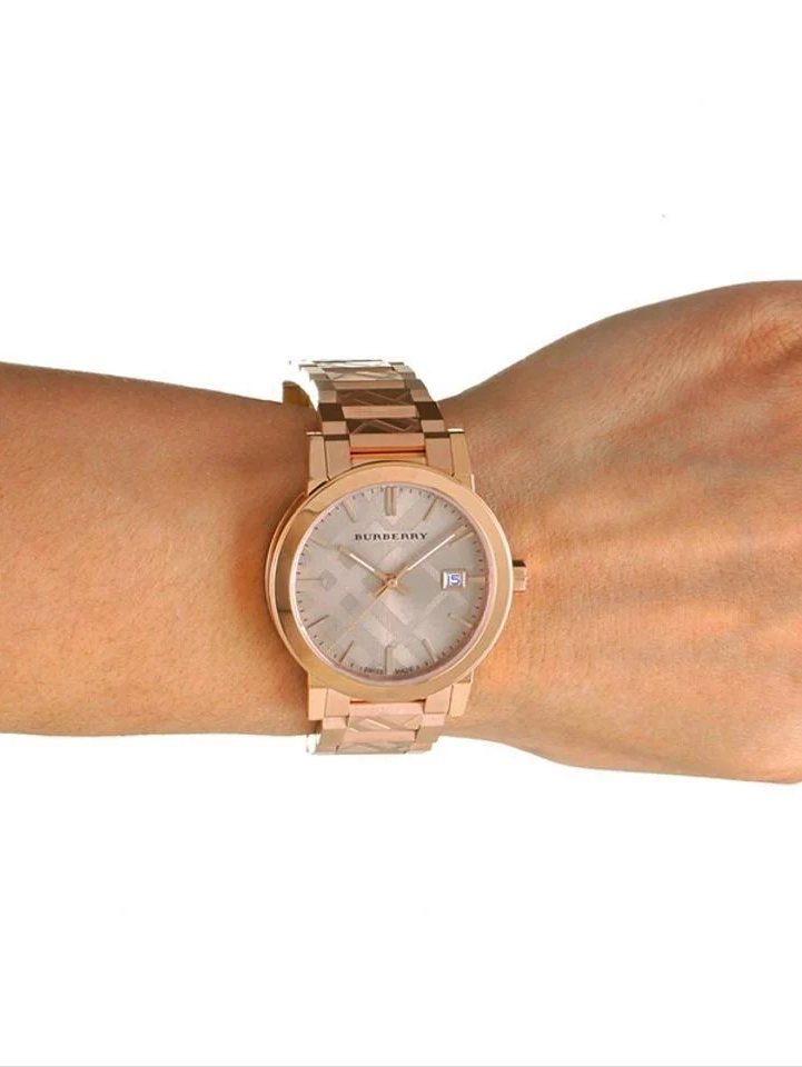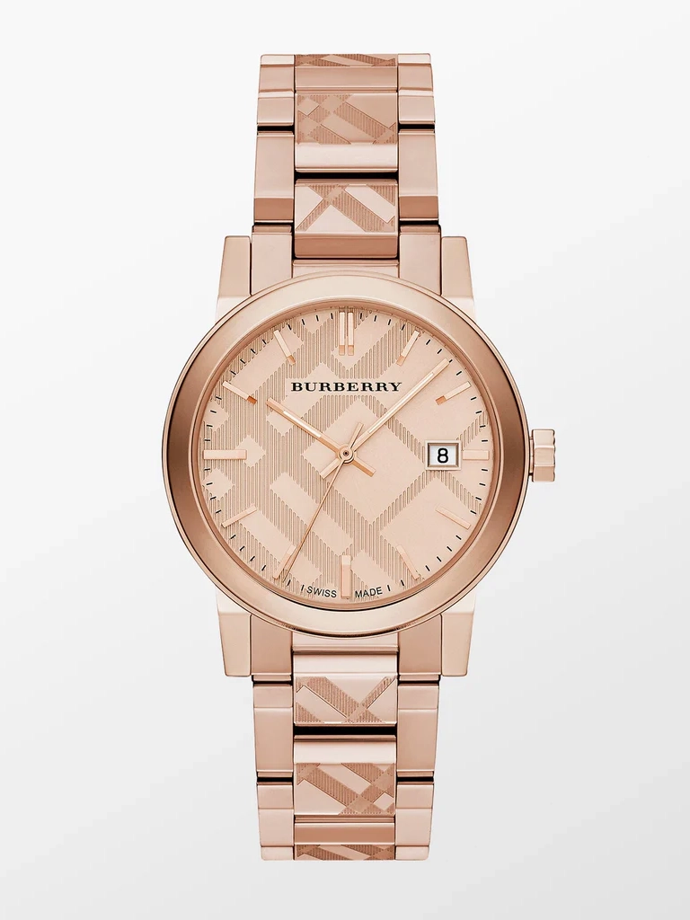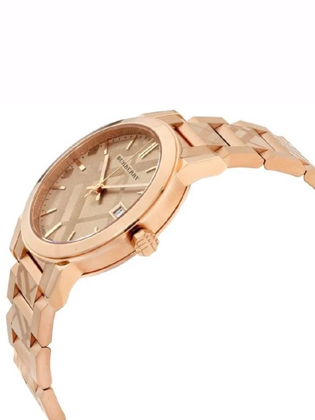 Cadran rose gold avec motif Check Burberry gravé et fonction date