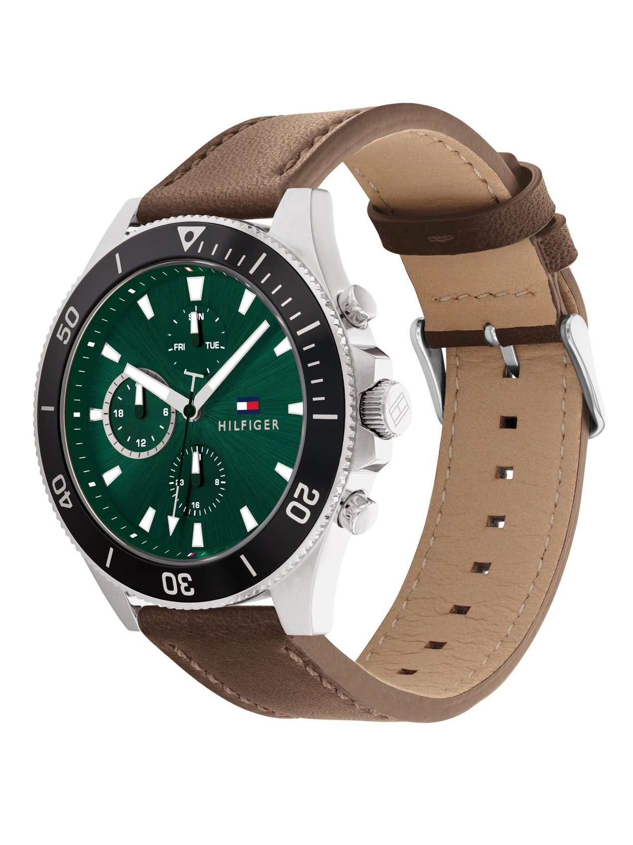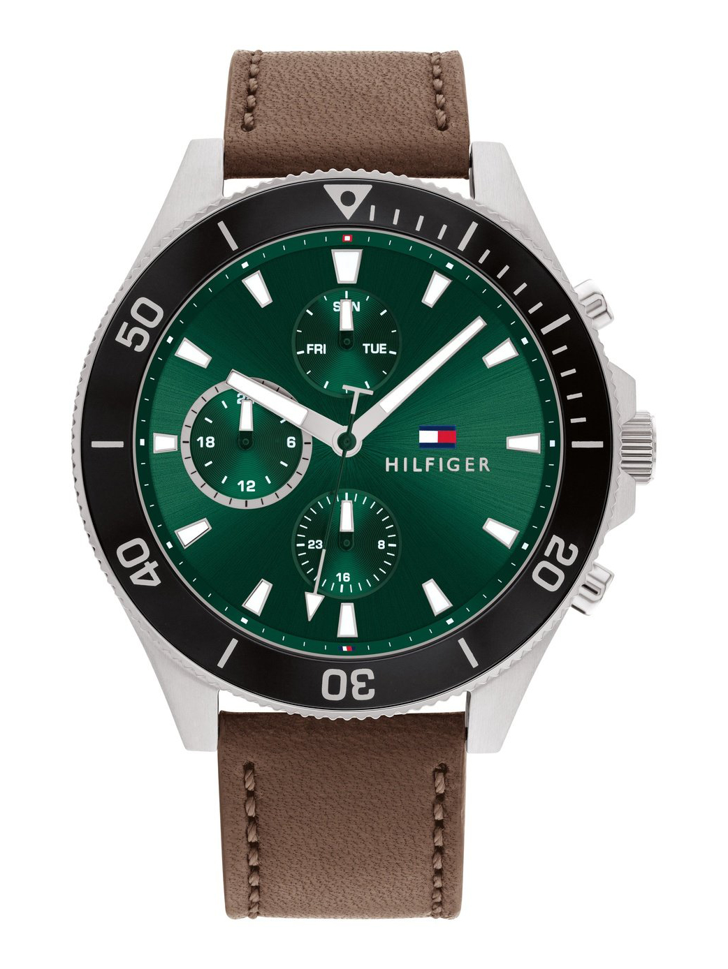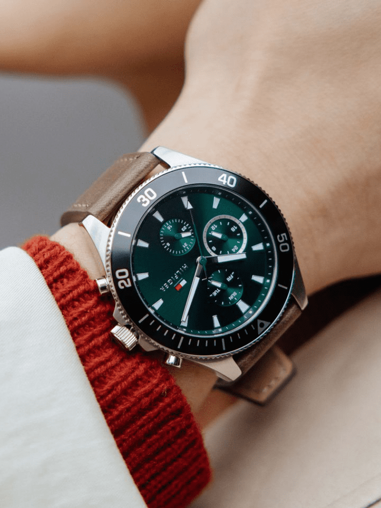 Tommy Hilfiger Larson pour Homme Cadran Vert Soleillé & Bracelet Cuir Marron